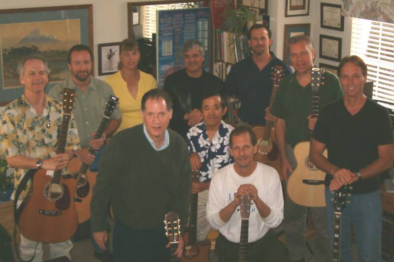 Clockwise from left: John Hudson, Gene Graham, Valerie Versis, Laurence Juber, Mike Brennan, Arnie Larson, Steven Stafford, DR, Herb Tanimoto, Jim Frank.