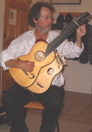 Michael Chapdelaine continues his evolution from young rocker to serious classical guitarist to visionary composer to brilliant arranger of pop music performed on nylon- and steel-string guitars. The University of New Mexico at Albuquerque professor tours quite a lot, with his students adjusting to his extended absences with the understanding that "practices what he preaches." It was a treat to have MC share his thoughts and tricks of the trade with a workshop at my home studio, followed by an utterly amazing concert at Our house gallery and framing in El Dorado Hills. His style of introducing and playing his selections and his percusive, tasty grooves got the audience on their feet.