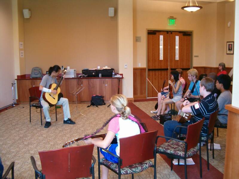 Having just presented a clinic in the topic for the South Bay Guitar Society, I chose Musical Expression as my focus. It was up to us to find the site of our residencies. Folsom's Teen Summer Reading Program at the local library provided a ready supply of potential students. Last year I coordinated with Library Technician Debbie Centi to conduct a "Guitar Basics for Teens" summer workshop there, and she handled this year's promotion as well, making flyers and posters and signing up teens (though a few 12-year-olds snuck in!) There were guitarists, violininsts, a cellist and a singer, so I had to adjust the workshops to include non-guitarists.