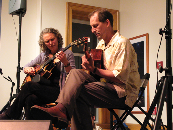 Mimi Fox and I concentrate as she improvises over my original composition, Villa Nueva. She invited me up to join her in an encore.